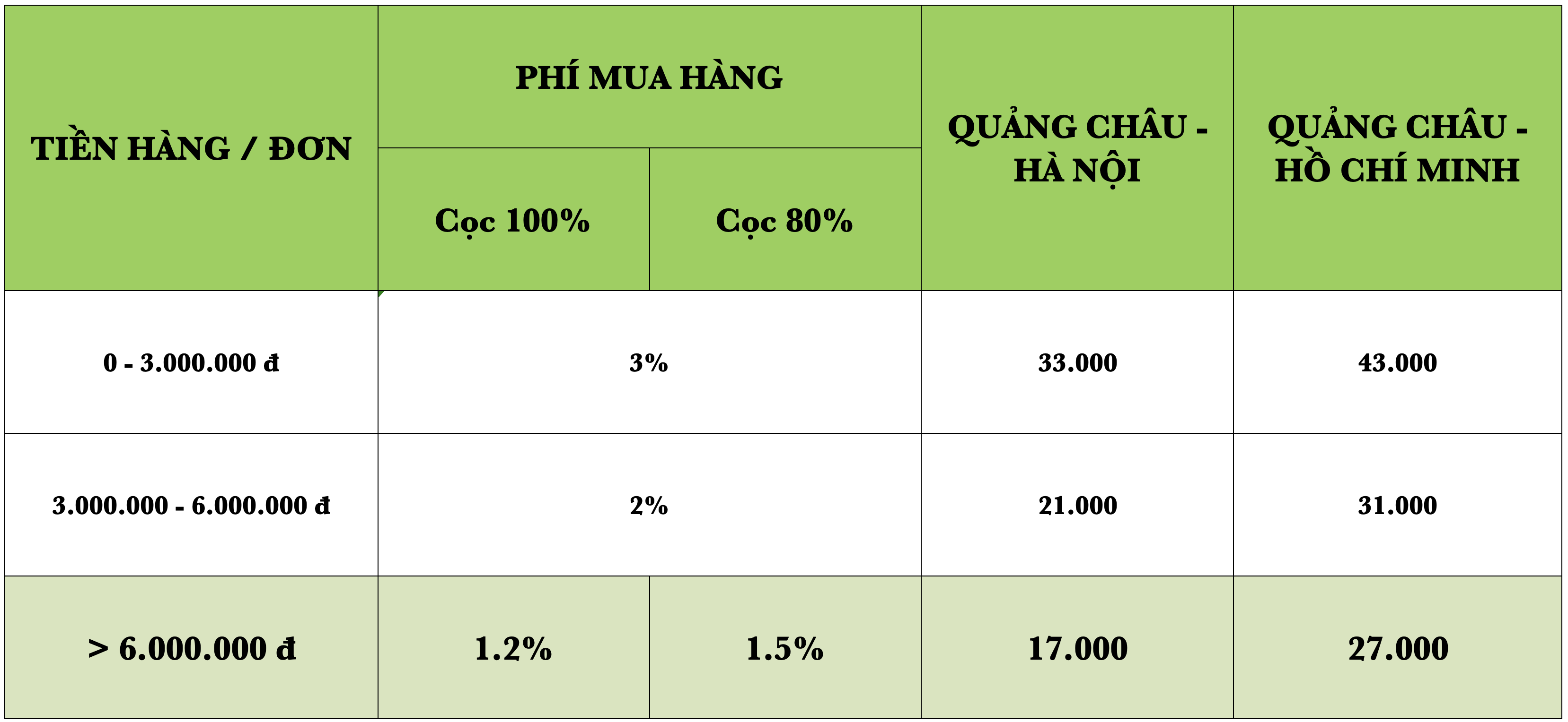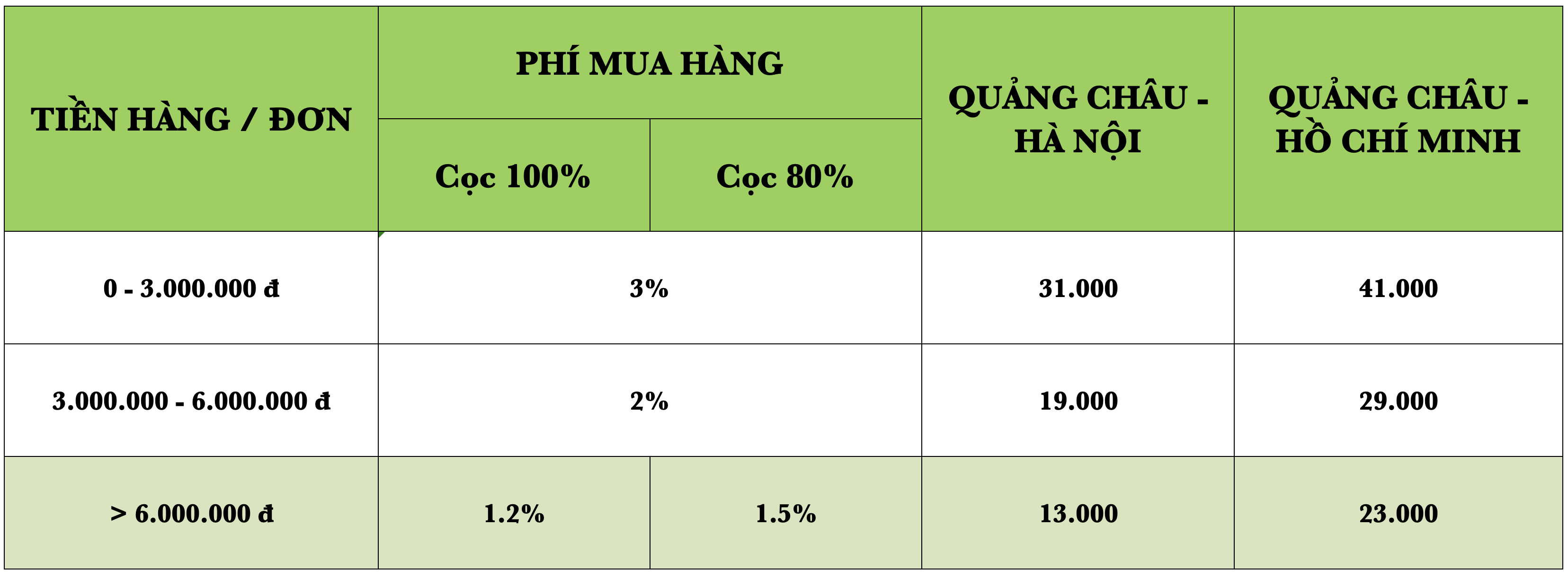 2. Phí mua hàng và Phí vận chuyển Nhanh - Quảng Châu